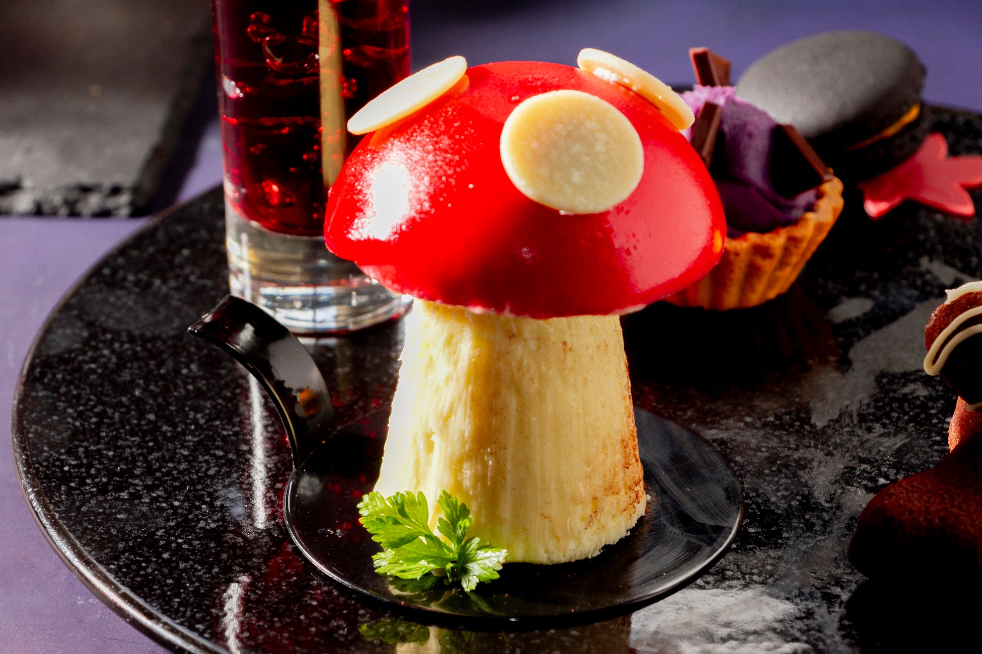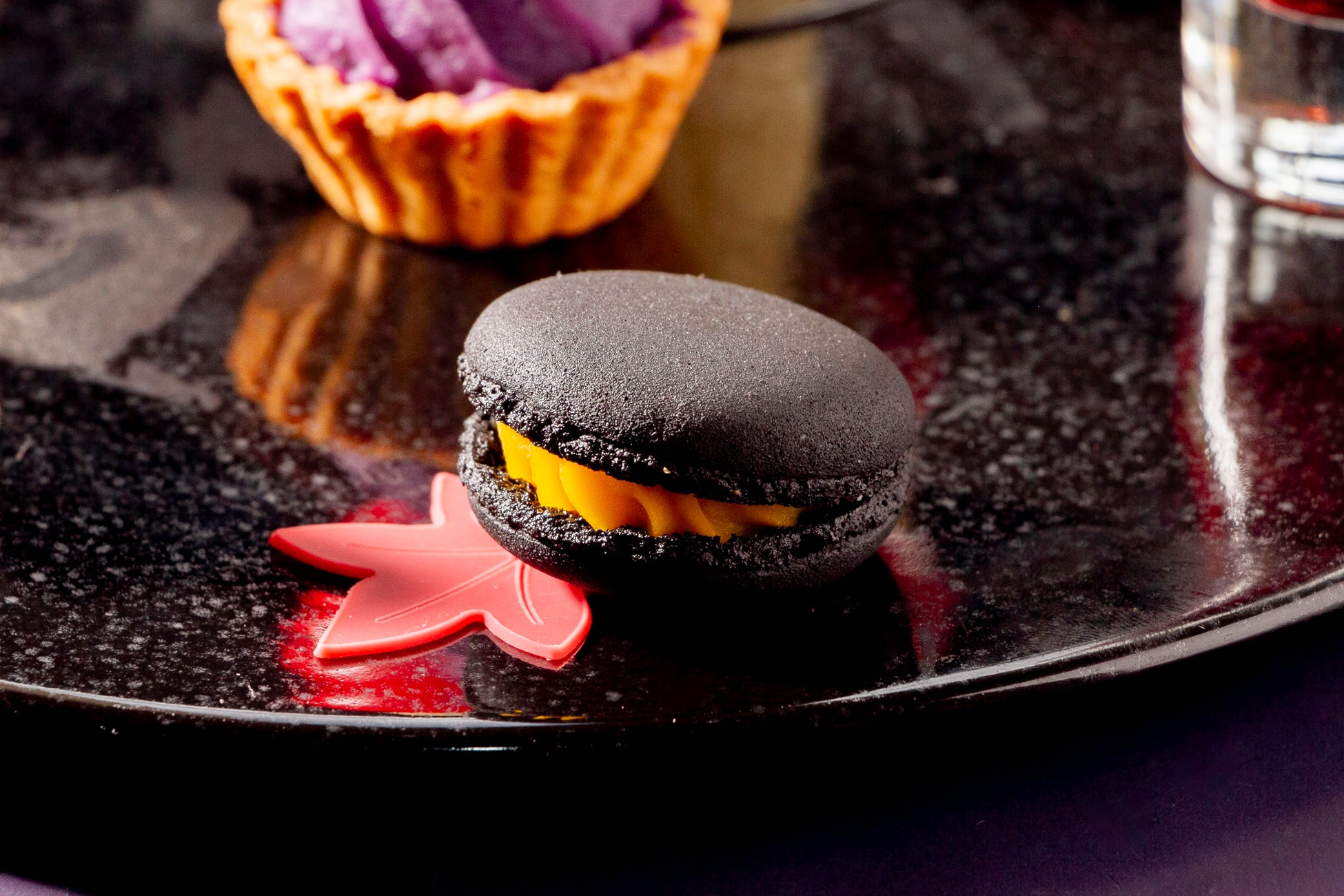 ブラックユーモアのあるインパクト抜群のスイーツやセイボリーが勢ぞろいしており、紫芋やパンプキンなどの秋の味覚も取り入れた、見た目にも味にも楽しめる要素がたっぷりの内容になっております。