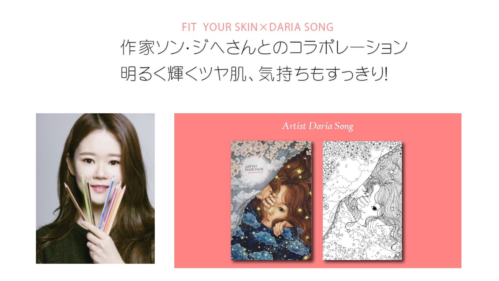 人気のアートフィットマスクパックシリーズは韓国の作家ソン・ジ氏のカラーリングを一緒に同封して、スキンケアと一緒に塗り絵ができる商品です。マスクしながら癒しのヒーリングの時間をお届けします。