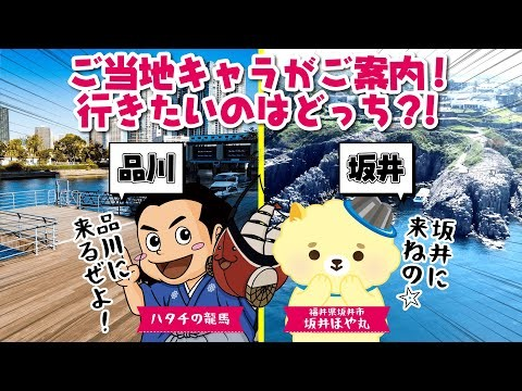 PR動画は、街ブラロケを行った観光動画で、PR対決をするといった内容。品川区の観光大使‘見習い’「ハタチの龍馬」と、坂井市の公式キャラクター「坂井ほや丸」とがキャラクター同士の絶妙なかけ合いを楽しめるほか、観光情報も盛り込んだ内容となっています。