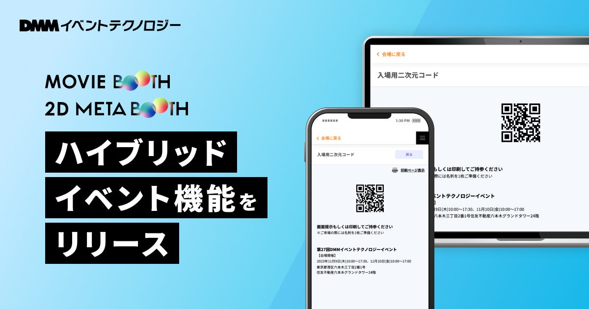 9月1日(金)にハイブリッドイベント機能が追加された「WEB BOOTH(ウェブブース)」に続いて、「2D META BOOTH」と「MOVIE BOOTH」にハイブリッドイベント機能が追加されたことで、DMMが提供するさまざまなプラットフォームでハイブリッドイベントの効率的な管理が可能となりました。