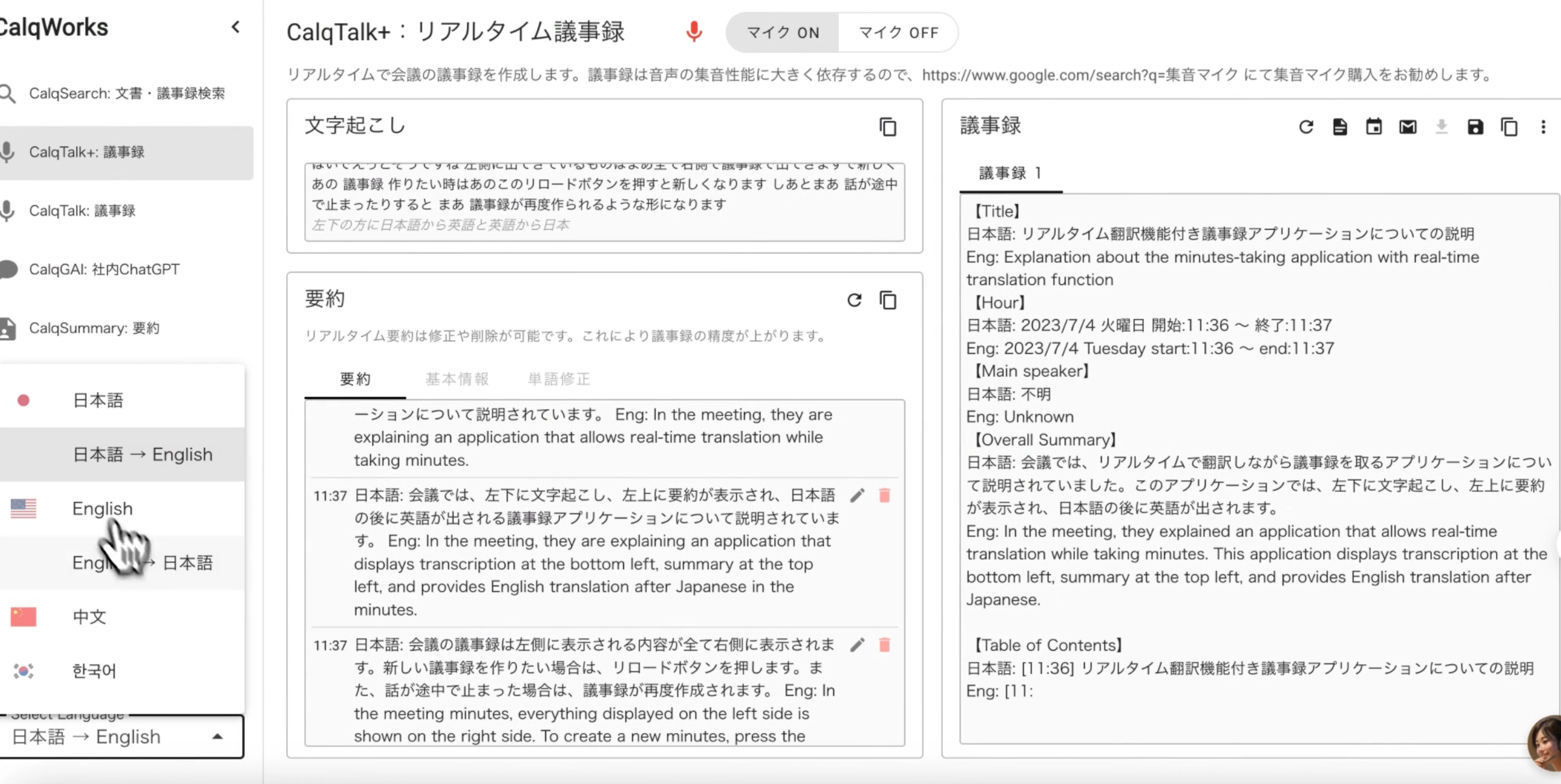 日英リアルタイム議事録で会話の流れをとらえ易く: CalqTalk+ 新機能リリース