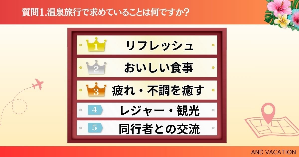 そこで、温泉旅行に求めていることをアンケートで聞き取り調査をしました。ぜひ、チェックしてみてください!