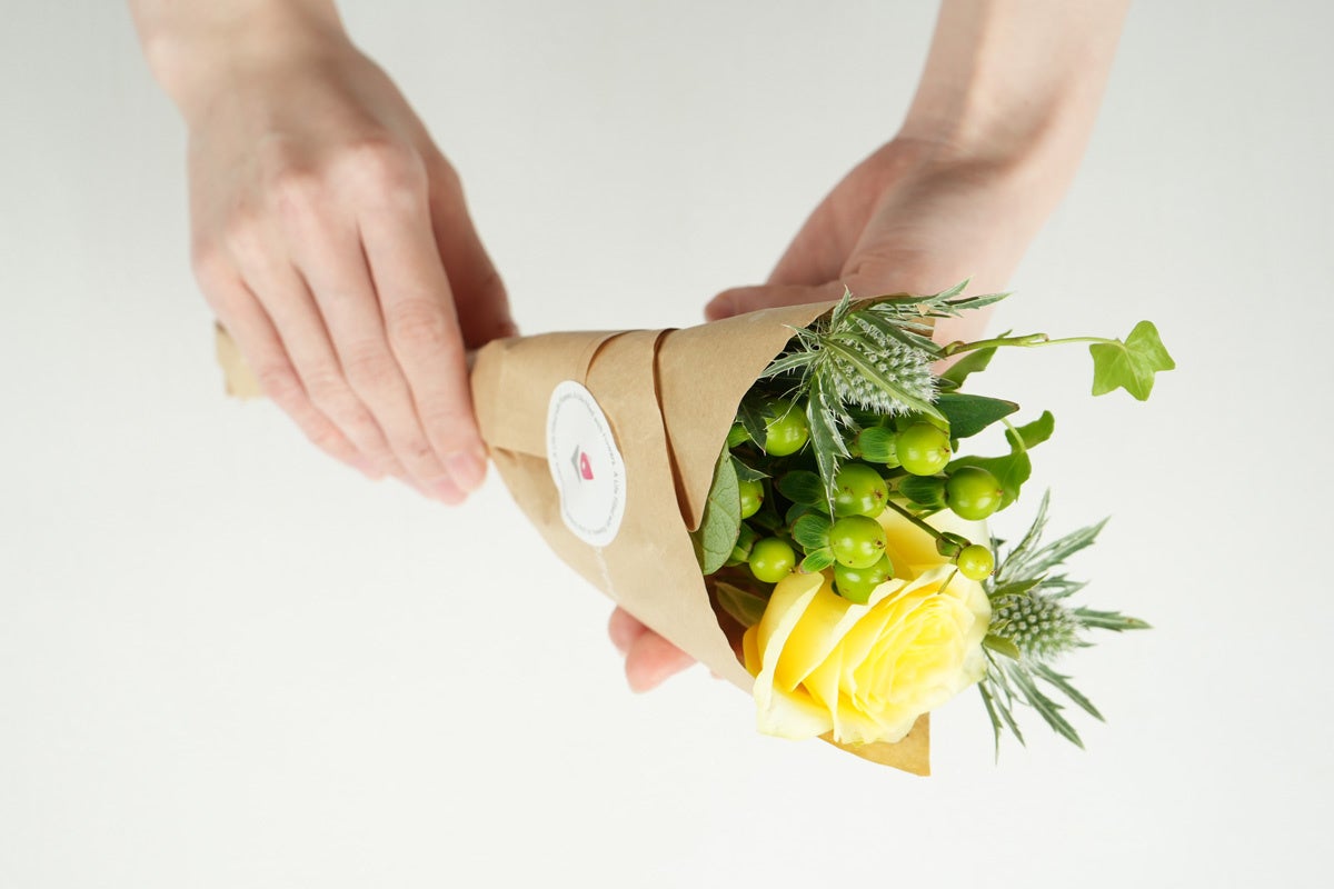 ブルーミーからは、老若男女問わず花束の主役として人気の、バラをメインにしたブーケをご用意いたしました。