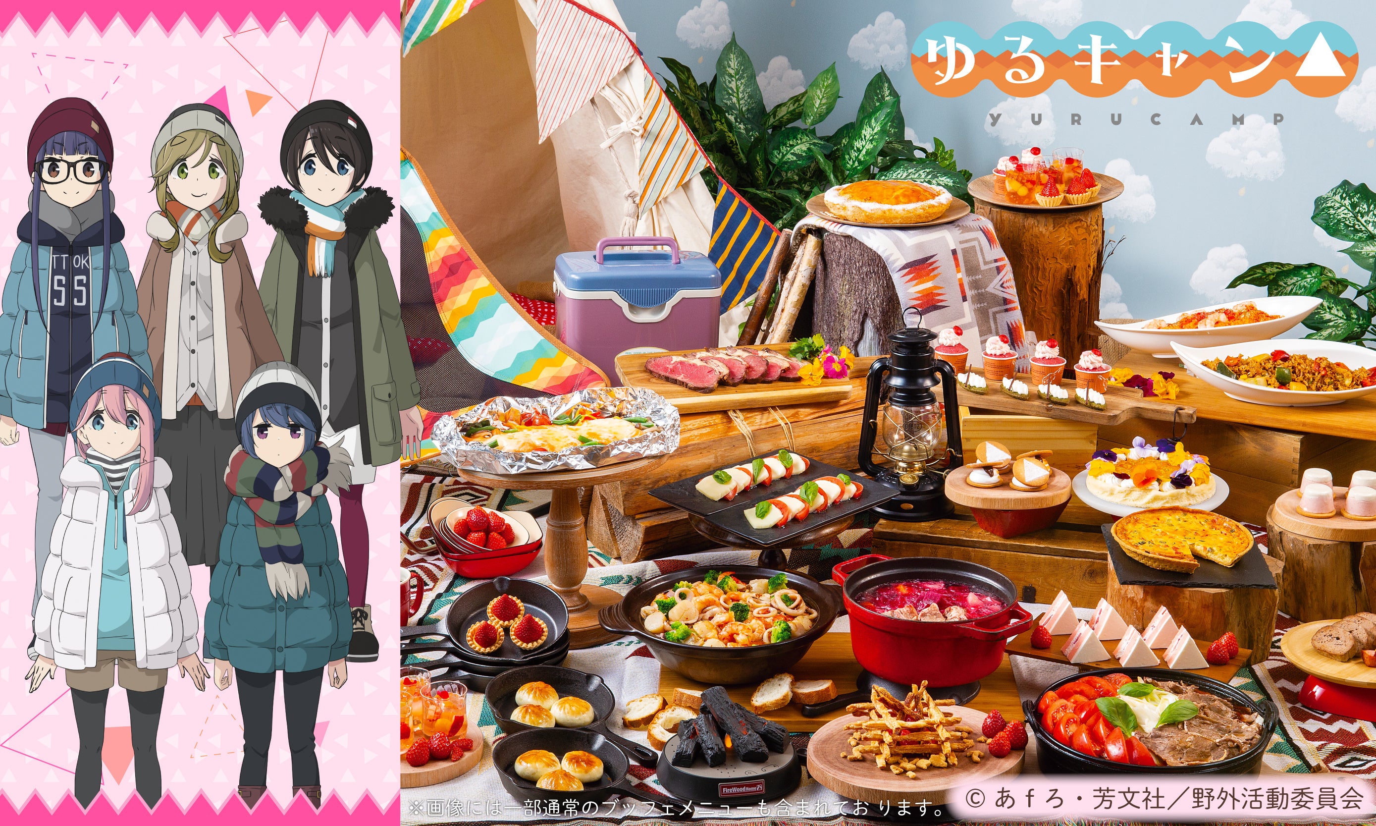 ウィズコロナでアウトドアブームの再到来によりキャンプのニーズが高まる中、本作品『ゆるキャン△』シリーズは、等身大の女子高校生の日常と、そこから繰り広げられる仲間たちとのキャンプがゆるやかに描かれた人気のアニメーションです。今回その物語に登場する「キャンプ飯」を模した料理やスイーツをはじめ、料理長が創作したキャンプ料理やパティシエがいちごをメインに使用したスイーツなど、彼女たちと一緒に楽しむホテルの魅力的なパーティをテーマにしたブッフェを展開いたします。