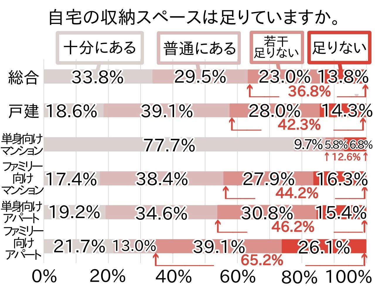 【住宅タイプ別】自宅の収納スペースは足りない方が多数