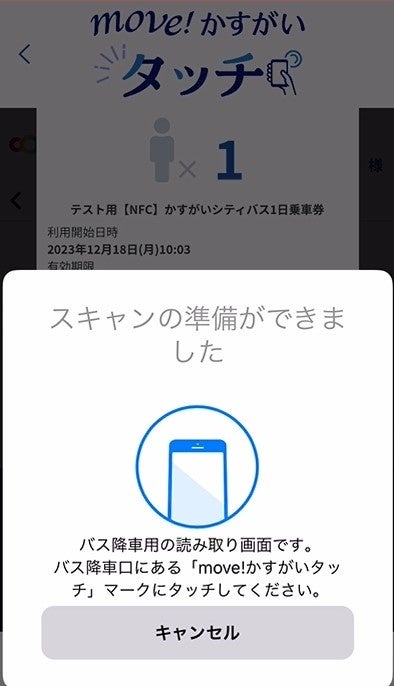 専用アプリ「move!かすがいタッチ」をダウンロードしタッチ認証対象の乗車券を購入の上、バス車両内のタッチプレートの「読み取りマーク」に端末をタッチして乗降車できます。