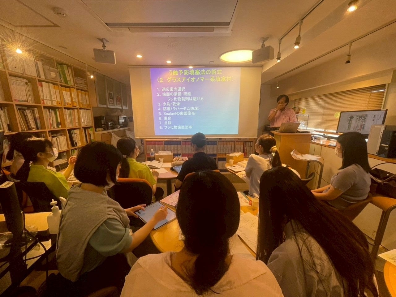 座学では、ラバーダムおよびシーラントに関する防湿の基本的な考え方や臨床応用について学習しました。実習に先立ち、正確な技術の背景となる理論を深めることで、より理解の深まる内容となっていました♪