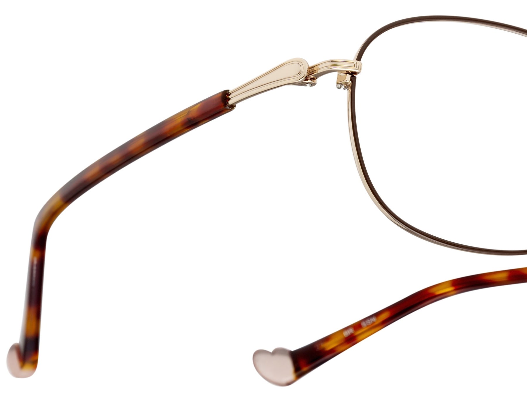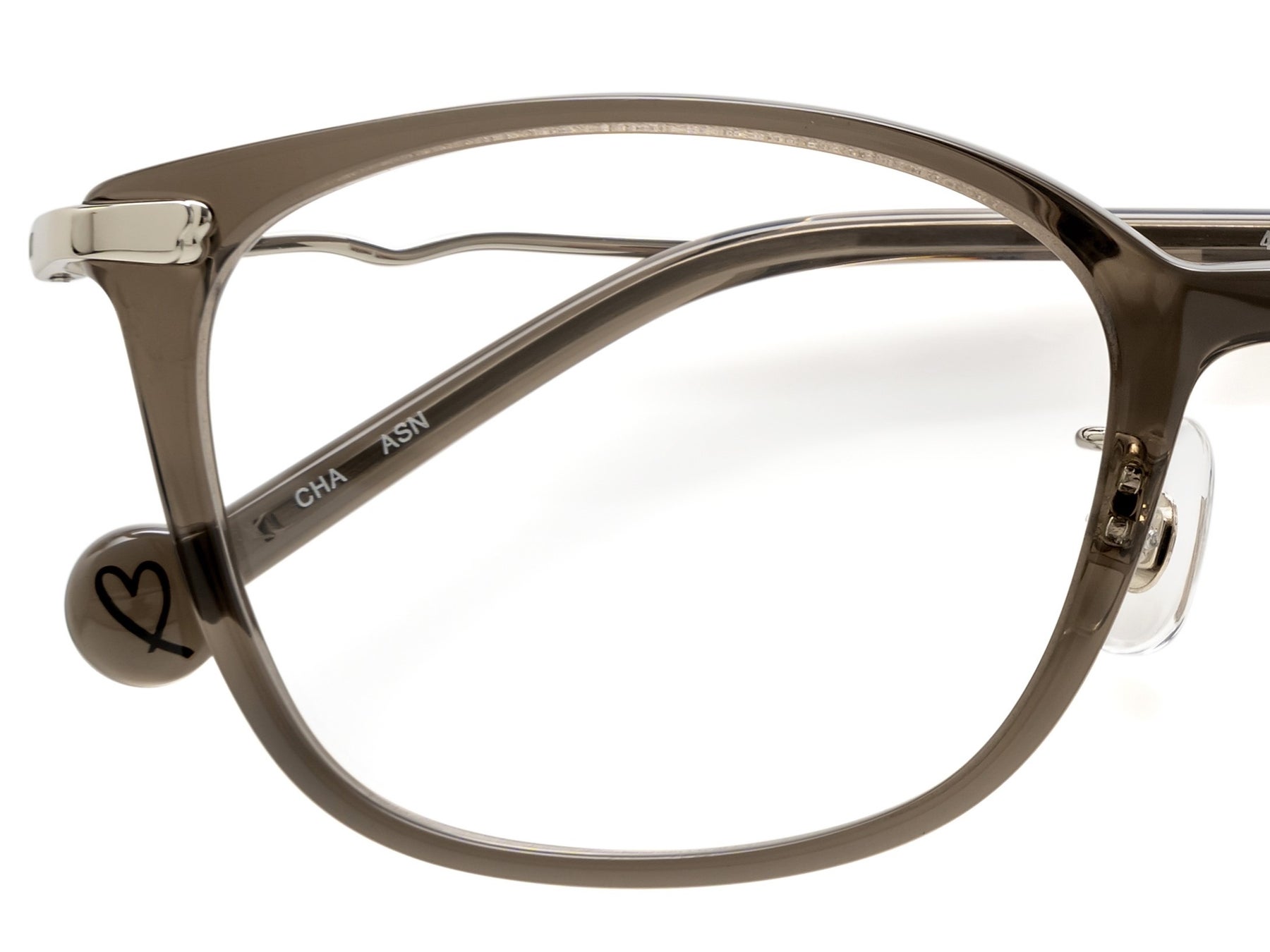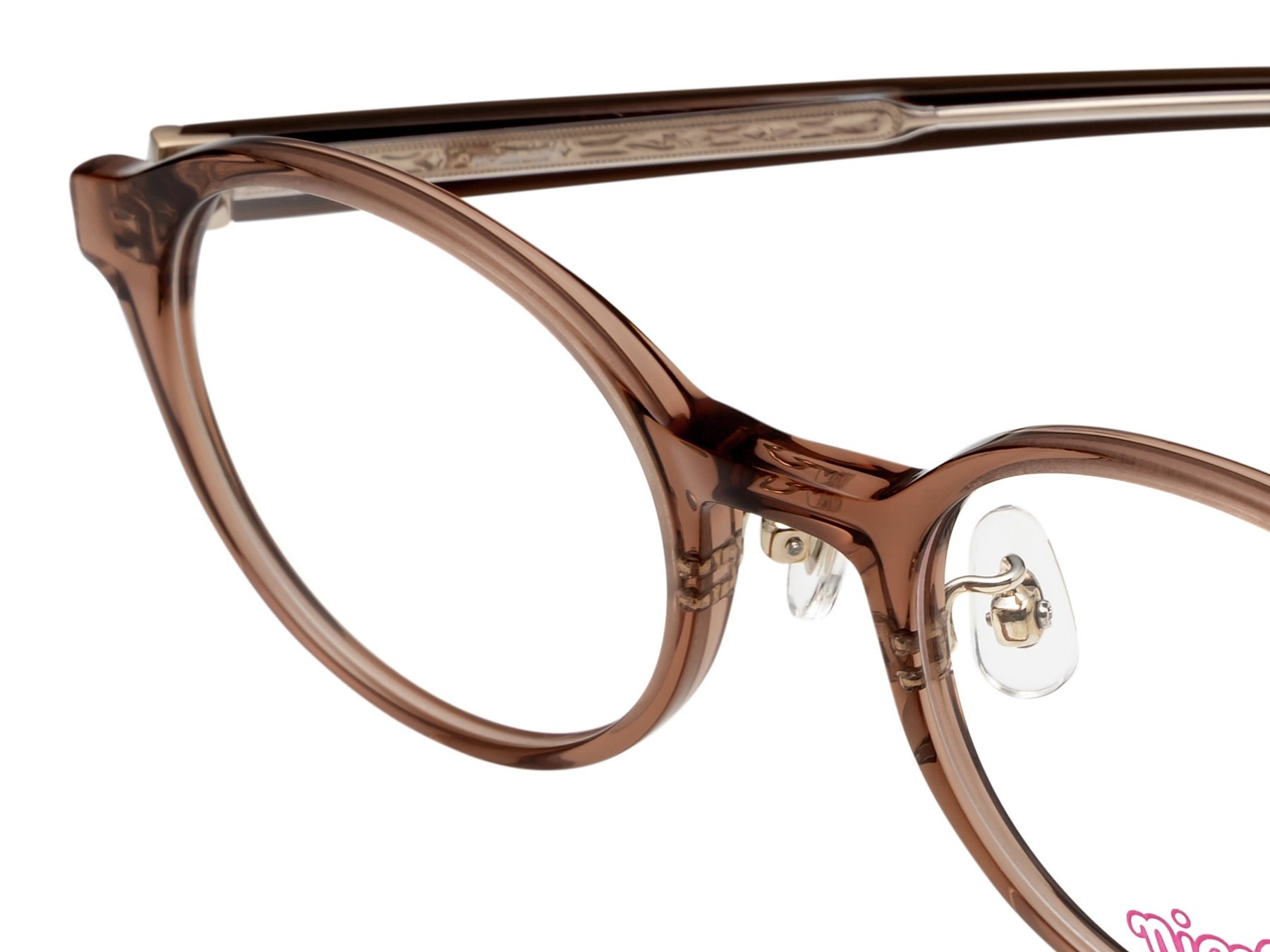 可愛らしい丸みのあるボストンシェイプ。テンプル芯には、中国コスメのパッケージをイメージした彫金模様を施しました。カラーは、デミブラウン、ピンクブラウン、クリアブラックの3色。