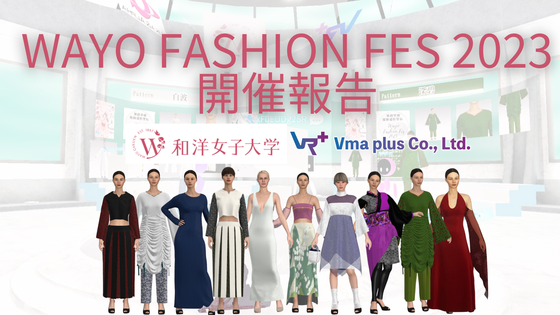 「Wayo Fashion Fes 2023」は、和洋女子大学服飾造形学科の学生たちがアパレル製品向け3Dモデリングソフト『CLO』を用い、”和”と”洋”の要素を融合させたファッションデザインの可能性を追求するプロジェクトです。学生たちは自身でアイデアを出しデザインしたオリジナルの衣装を、Vma plus株式会社(以下: Vma plus)が提供するメタバース空間「Vma plus Station」上で披露しました。