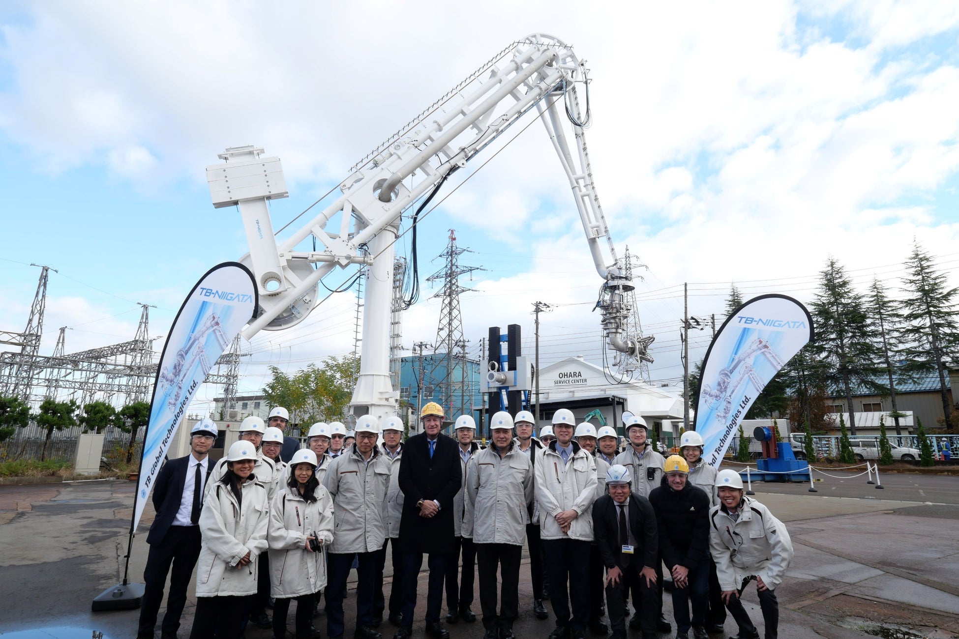 東京貿易ホールディングス株式会社(東京都中央区京橋、代表取締役社長 坪内秀介)のグループ会社であるTBグローバルテクノロジーズ株式会社(東京都中央区京橋、代表取締役社長 Laurent Poidevin、以下TBG)の長岡工場(新潟県長岡市)を、シンガポール海事港湾庁(Maritime and Port Authority of Singapore, 以下MPA)長官のTeo Eng Dih氏、副長官のKenneth Lim氏らが来日し、日本郵船株式会社(以下NYK)とともに視察されました。