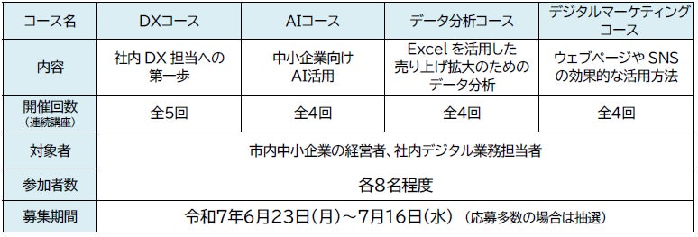 ➀ デジタル人材育成講座 (8月~9月実施予定)
