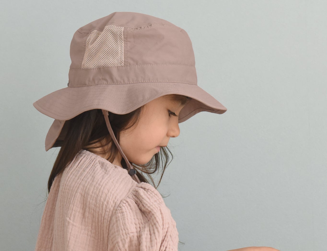 人気No.1のキッズハットに近いレベルの暑さ対策が叶い、また違った印象でかぶれる帽子に仕上げました。
