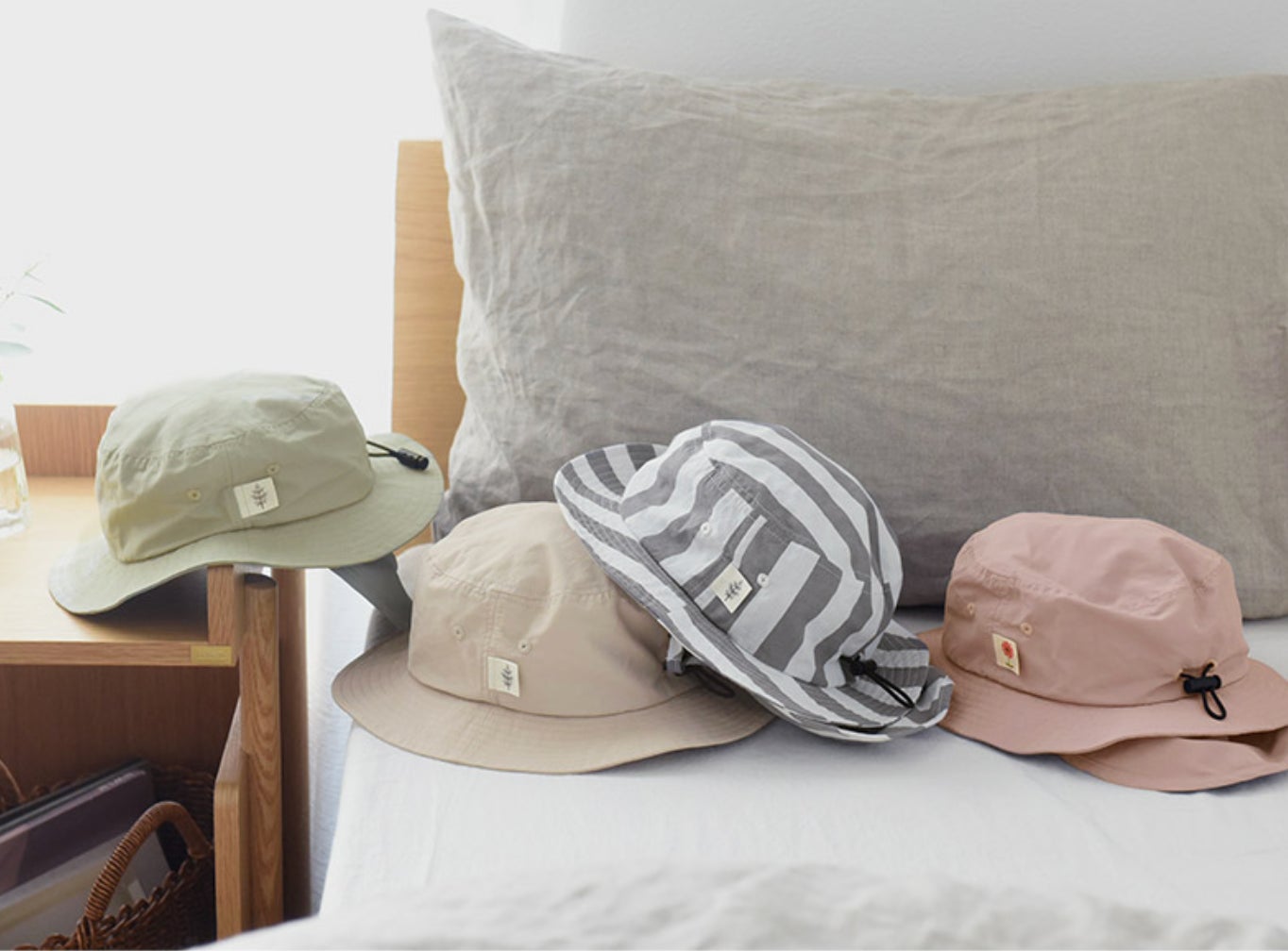 コーディネートの一部として楽しみながら、暑い日も安心を届けてくれる帽子たち。
