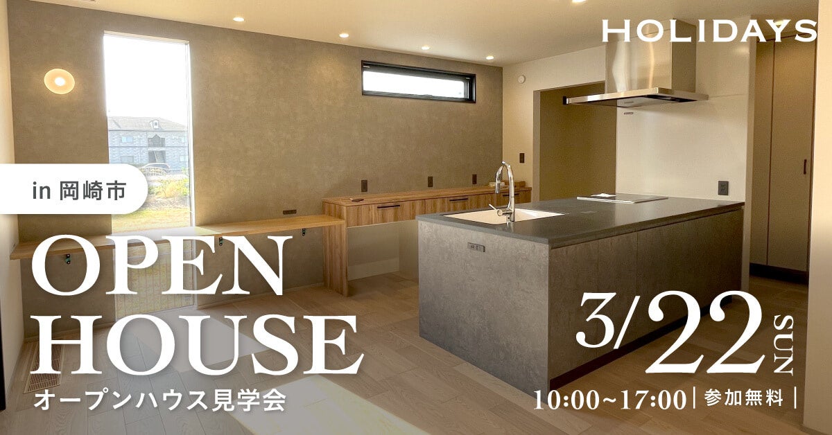 愛知県で注文住宅事業を展開する株式会社sumarch(本社:愛知県名古屋市中村区、代表取締役:鳥居儀彰、以下HOLIDAYS)は、オープンハウス見学会を2026年3月22日(日)に、愛知県岡崎市にて開催いたします。