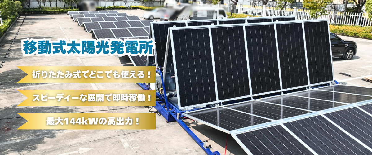 電力インフラがない場所でも即座に稼働できる機動性と利便性を兼ね備えた製品です。最大144kWの発電容量を備えたPVパネル200枚を搭載。折りたたみ式で迅速な展開が可能なため、立地を問わず設置できます。さらに、防災・BCP対策、物流拠点、建設現場、充電ステーションなど幅広い用途でご活用いただけます。