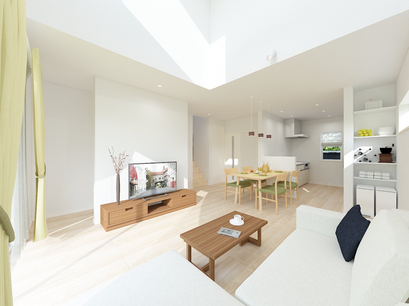 プランは累計販売棟数4000棟を超える実績とノウハウを活かしたもので、収納スペースを豊富に確保しつつ、自然光がたっぷりと差し込む間取りで、一日中明るい室内を実現します。