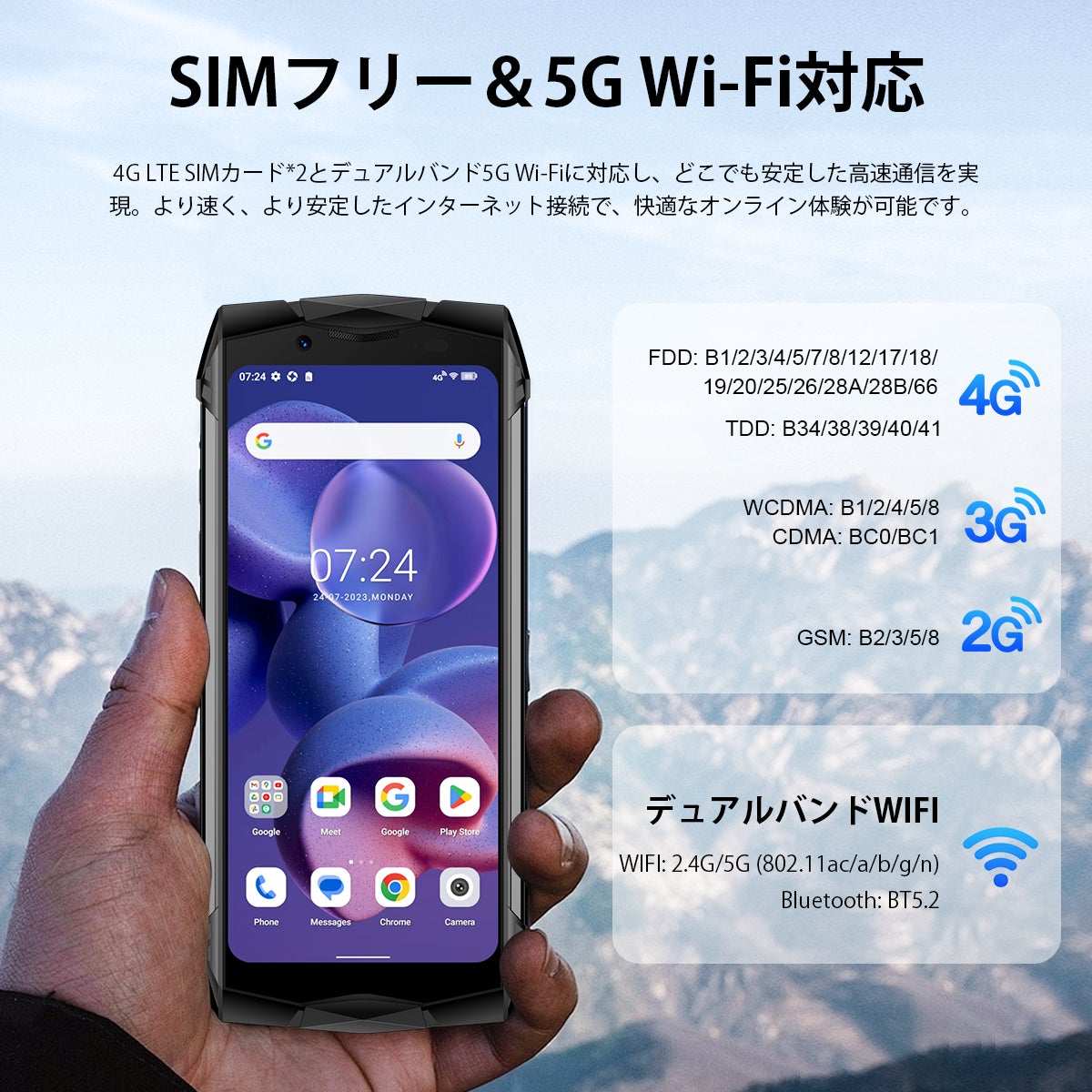 4G LTEと5G Wi-Fiに対応し、どこでも快適な通信を提供します。DOOGEE Sminiは、堅牢なデザインと先進的な機能を兼ね備えたタフネススマートフォンで、アクティブなライフスタイルを支援します。