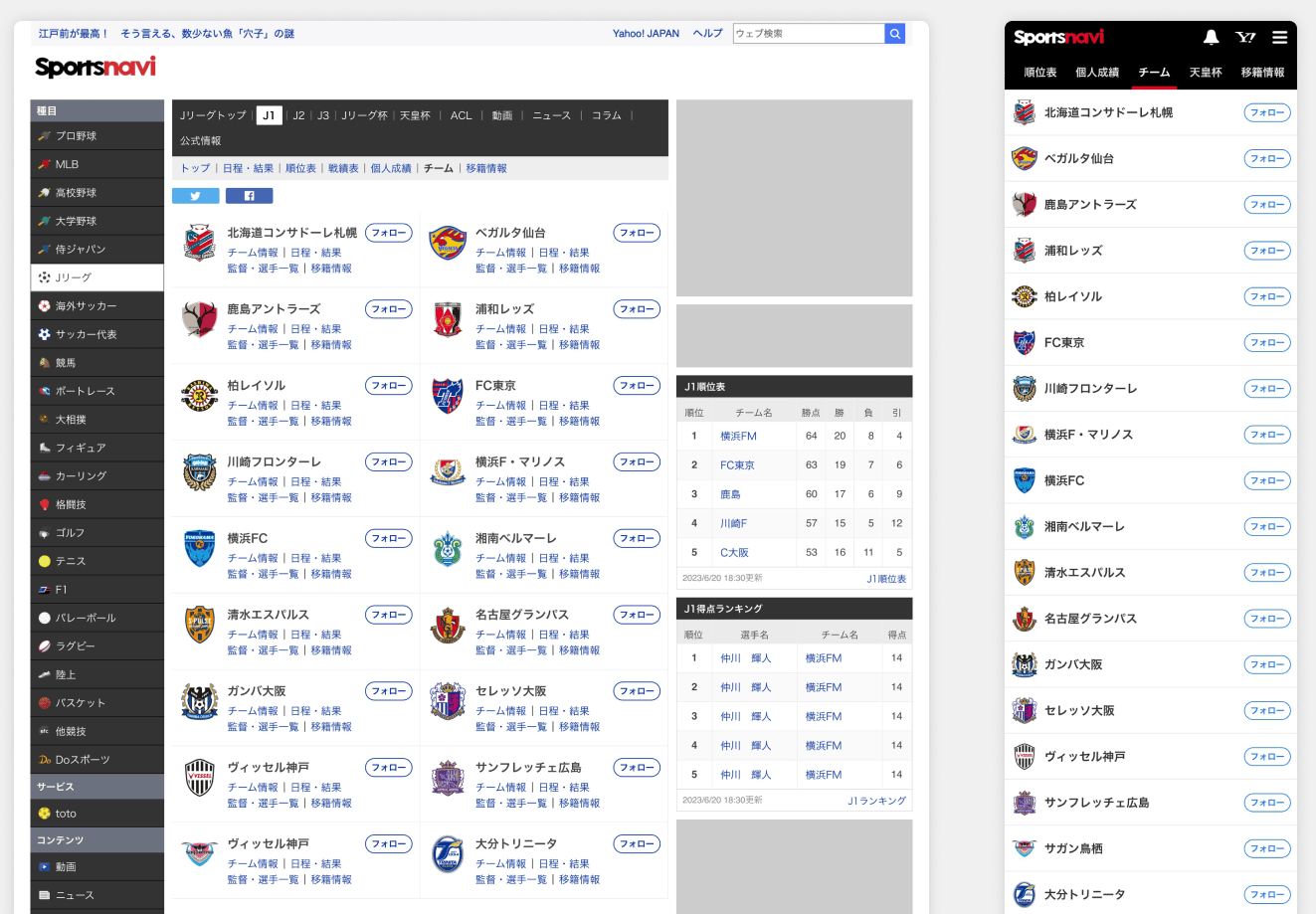 LINEヤフー株式会社(以下、LINEヤフー)とスポーツナビ株式会社は本日、両社が協力して運営するスポーツ総合サイト「スポーツナビ」と「スポーツナビ」アプリ(iOS版、Android版)において、応援しているチームを「フォロー」することで、フォローしたチームの試合情報などが取得できる機能(以下、フォロー機能)の対象に、Jリーグの全チームと海外サッカー1部リーグのチームを追加しました。これにより、応援しているチームの試合を逃さずチェックできます。
