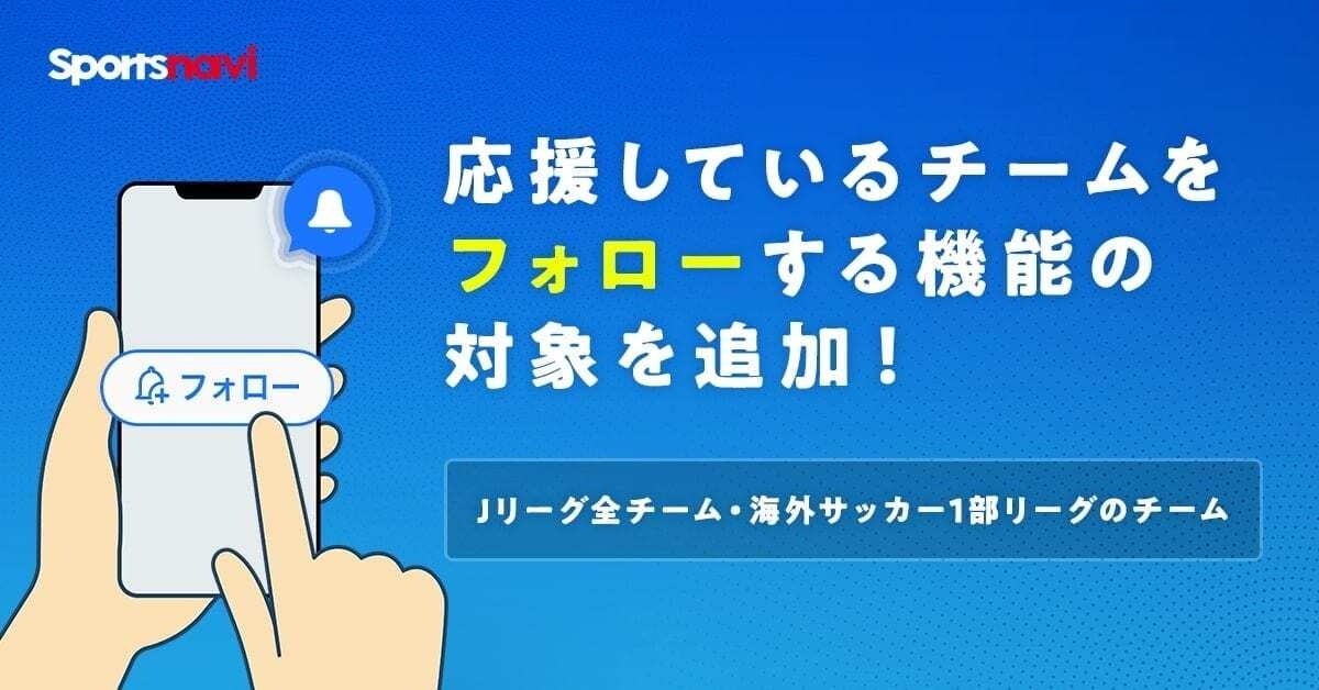 【スポーツナビ】応援しているチームを「フォロー」する機能にJリーグ全チームと海外サッカー1部リーグのチームを追加