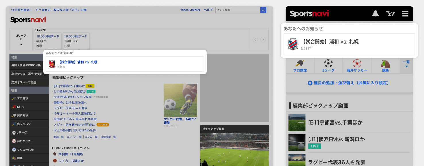5. フォローしたチームの試合情報がプッシュ通知でお知らせされます。