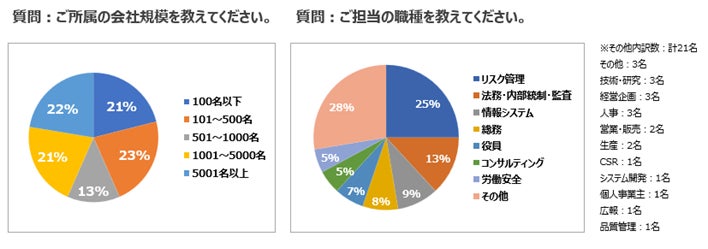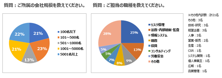 リスク管理/法務・内部統制・監査 など、法務・コンプライアンス関連部門の方が38%を占めました。