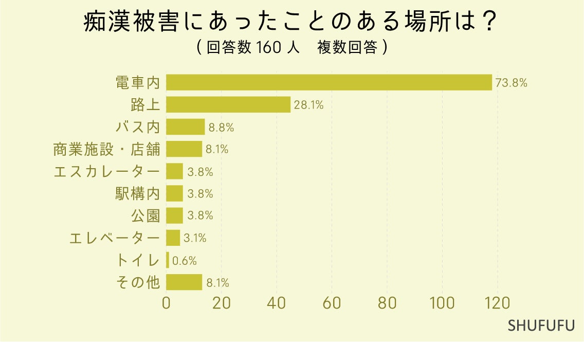 女性160人に「痴漢被害」に関するアンケート調査を行った所、