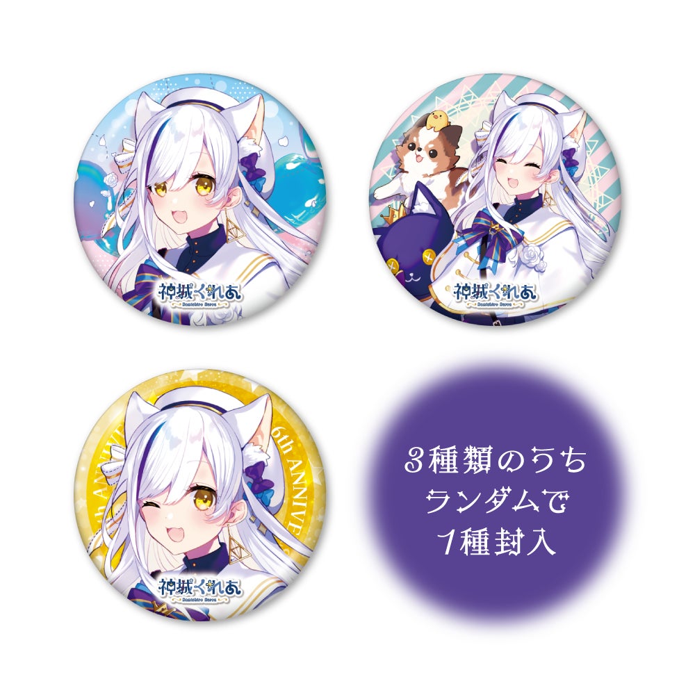 ・神城くれあ6周年記念缶バッチ(ホログラム仕様)×3種類+オリジナル台紙