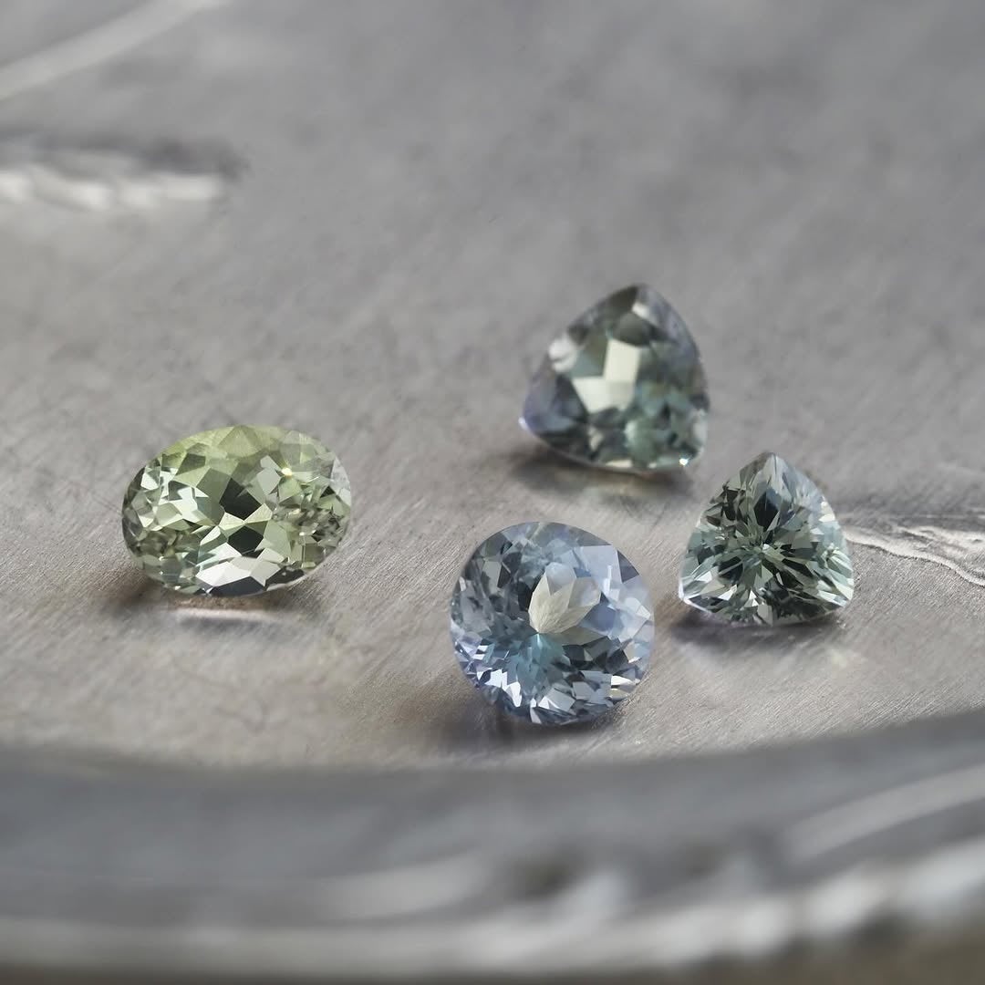 バイカラーのゾイサイト、グリーンガーネット、トリリアントカットのタンザナイトなどなど