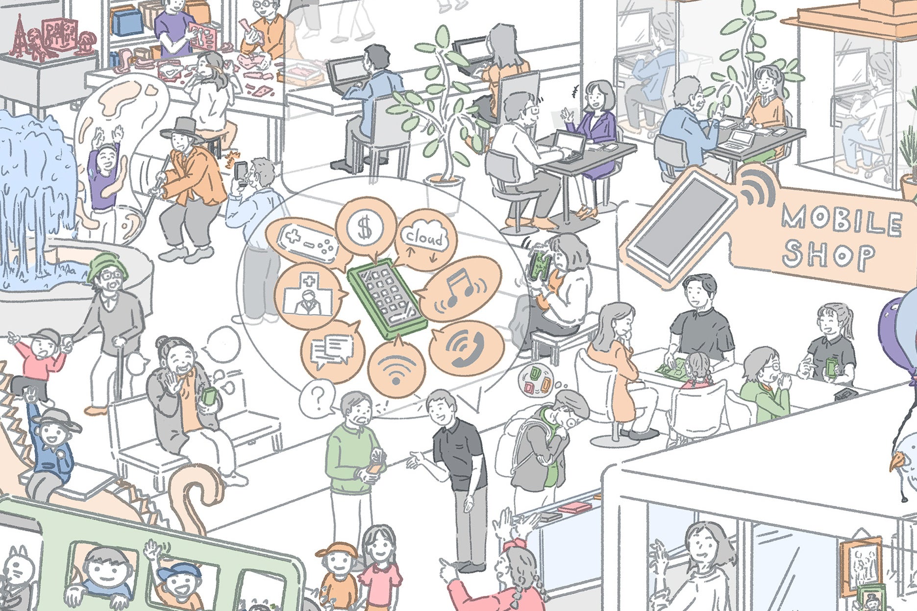 ここに描かれている一人ひとりは小さいですが、ワイワイと写真を撮る家族、パズルを楽しむ仲間たちなど、登場人物たちの声が聞こえてきて、ストーリーが感じられるようなイラストを心がけました。人と人とがつながることで生まれる喜び、その先に広がる幸せを感じてもらえたら嬉しいです。