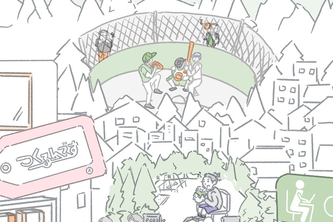 2022年7月には長らくトップを走り続けた創業者の大島康広から2代目社長の新谷隼人へと代表のバトンが渡り、第二創業期に突入。これを機に、ステークホルダーのみなさまにプラザクリエイトが目指す「みんなの広場」をより具体的にお伝えするため、コーポレートビジョンのイラストを作成しました。
