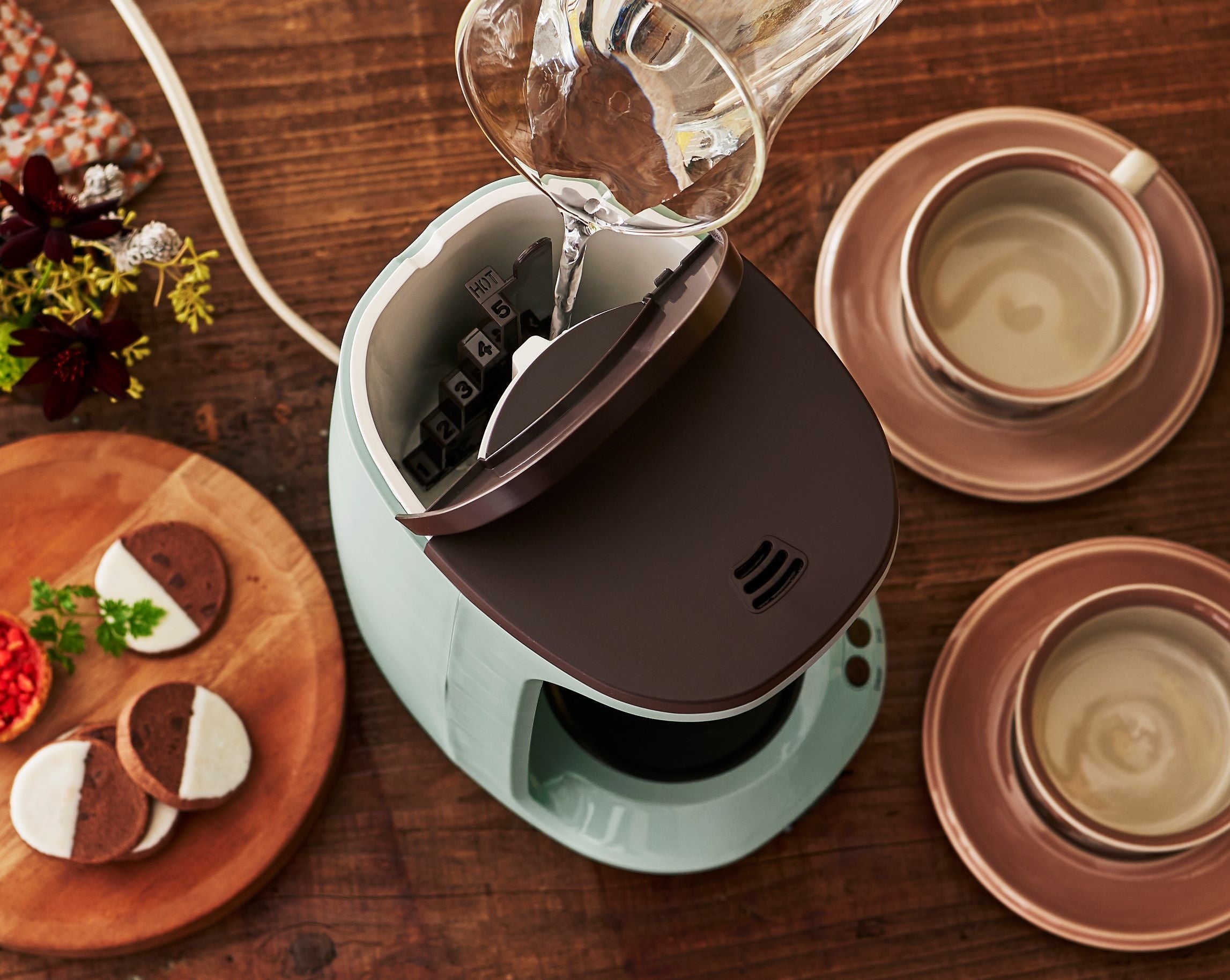 カラーは「ペールアクア」と「アッシュホワイト」の2色展開。レトロクラシックなデザインで毎日のコーヒータイムを彩る、新しいコーヒーメーカーの登場です。