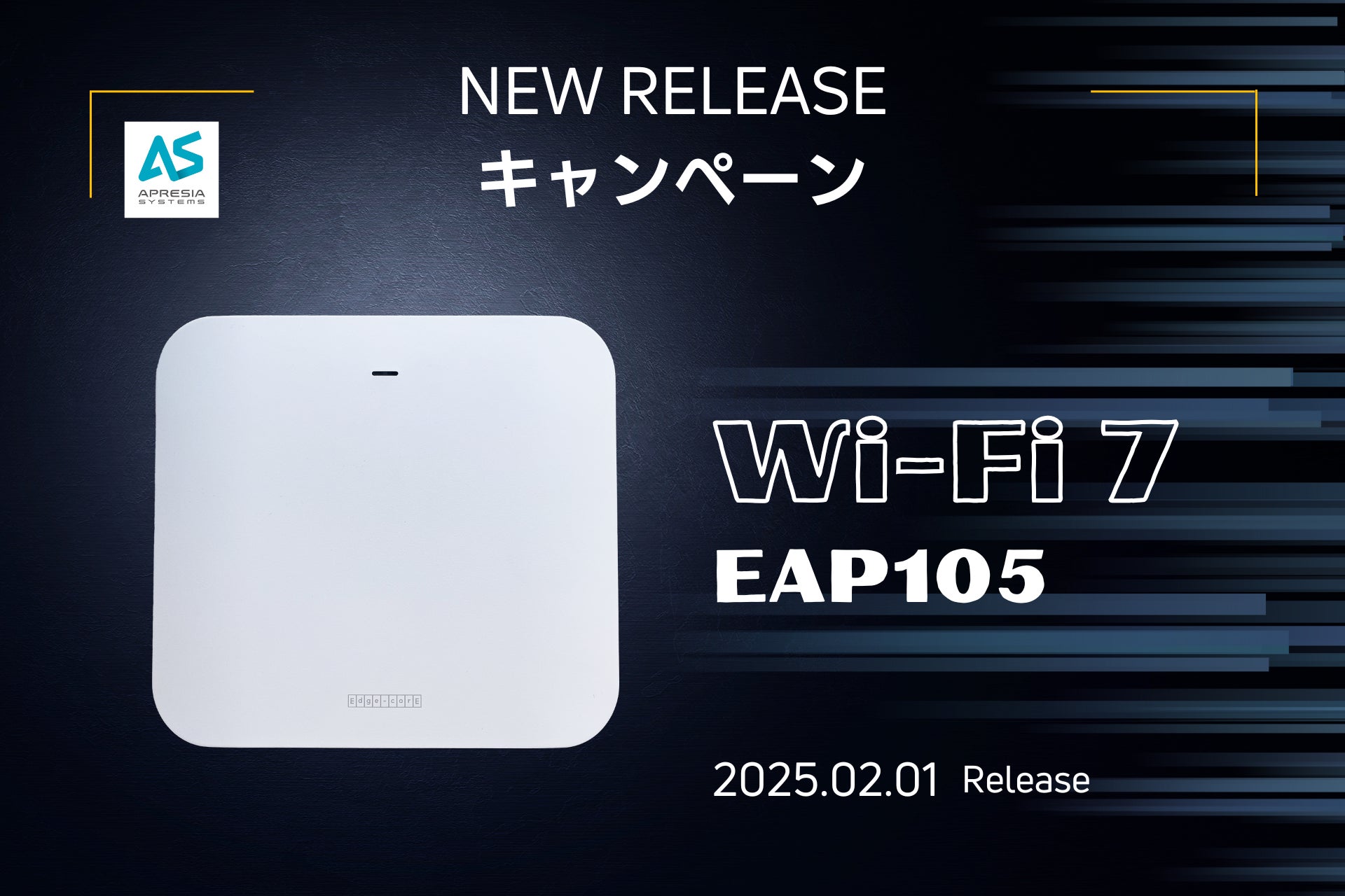 APRESIA Systems株式会社(本社 東京都中央区、代表取締役社長 末永 正彦)は、次世代の無線通信技術であるWi-Fi 7(IEEE802.11be)に対応した無線LANアクセスポイント「EAP105」を2025年2月1日より発売いたします。