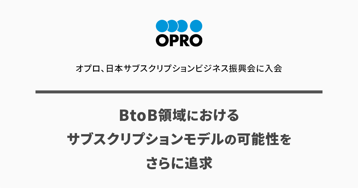 株式会社オプロ(本社:東京都中央区、代表取締役社長:里見 一典、以下オプロ)は、日本国内のサブスクリプションビジネスの普及と発展を目的とする「日本サブスクリプションビジネス振興会(以下、サブスク振興会)」に入会したことをお知らせいたします。