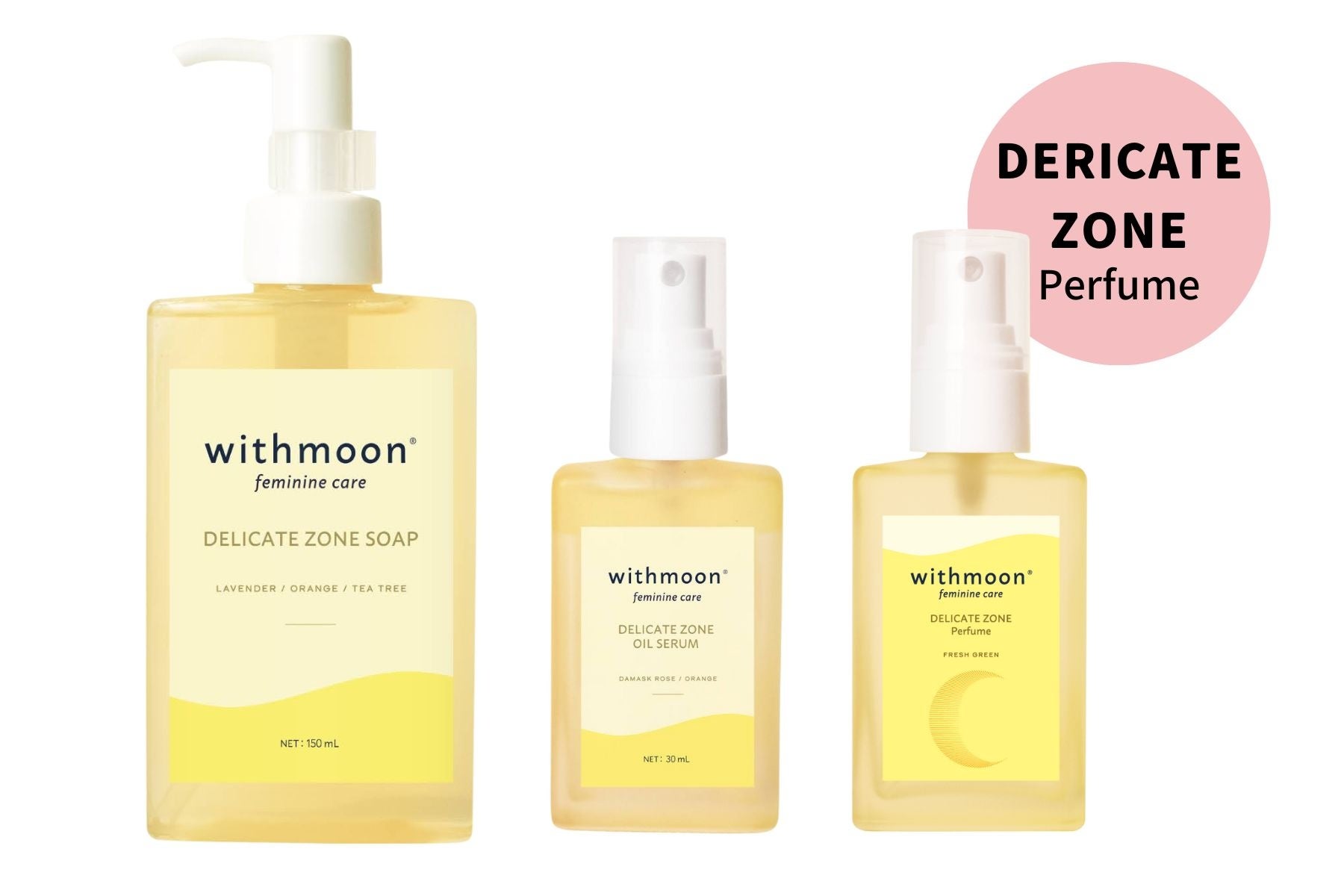 女性ホルモンバランスプランナー監修のデリケートゾーンソープ「withmoonモイスチャーフェミニンウォッシュ」(2,480円税込)と、デリケートゾーン用の美容液「withmoonフェミニンケアオイルセラム」(3,980円税込)のラインアップがあります。また、デリケートゾーンパフュームは、韓国で人気のデリケートゾーン用香水を日本向けに開発し、メディアにも多数取り上げられている注目の新トレンド商品です。