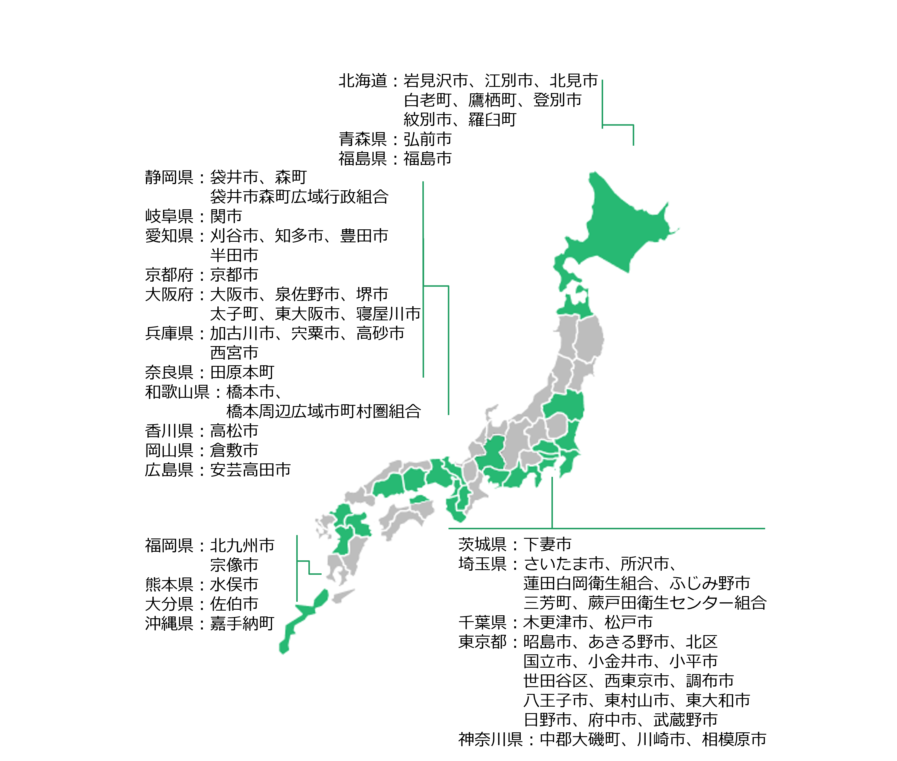 2022年12月23日時点で67箇所の自治体と協定や覚書を締結し連携し、リユースに関する啓発及びリユース事業を推進しております。