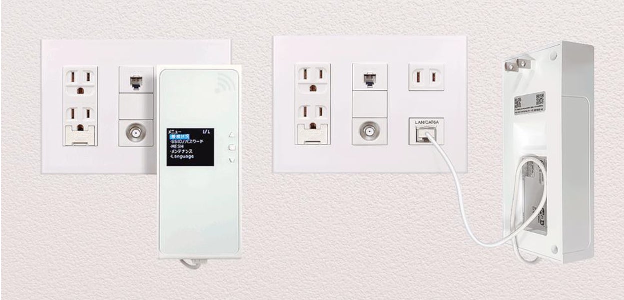 「THE MUSIC COURT」に導入する「脱着式Wi-Fi」は、マルチメディアコンセントに直接挿して設置するWi-Fi機器です。