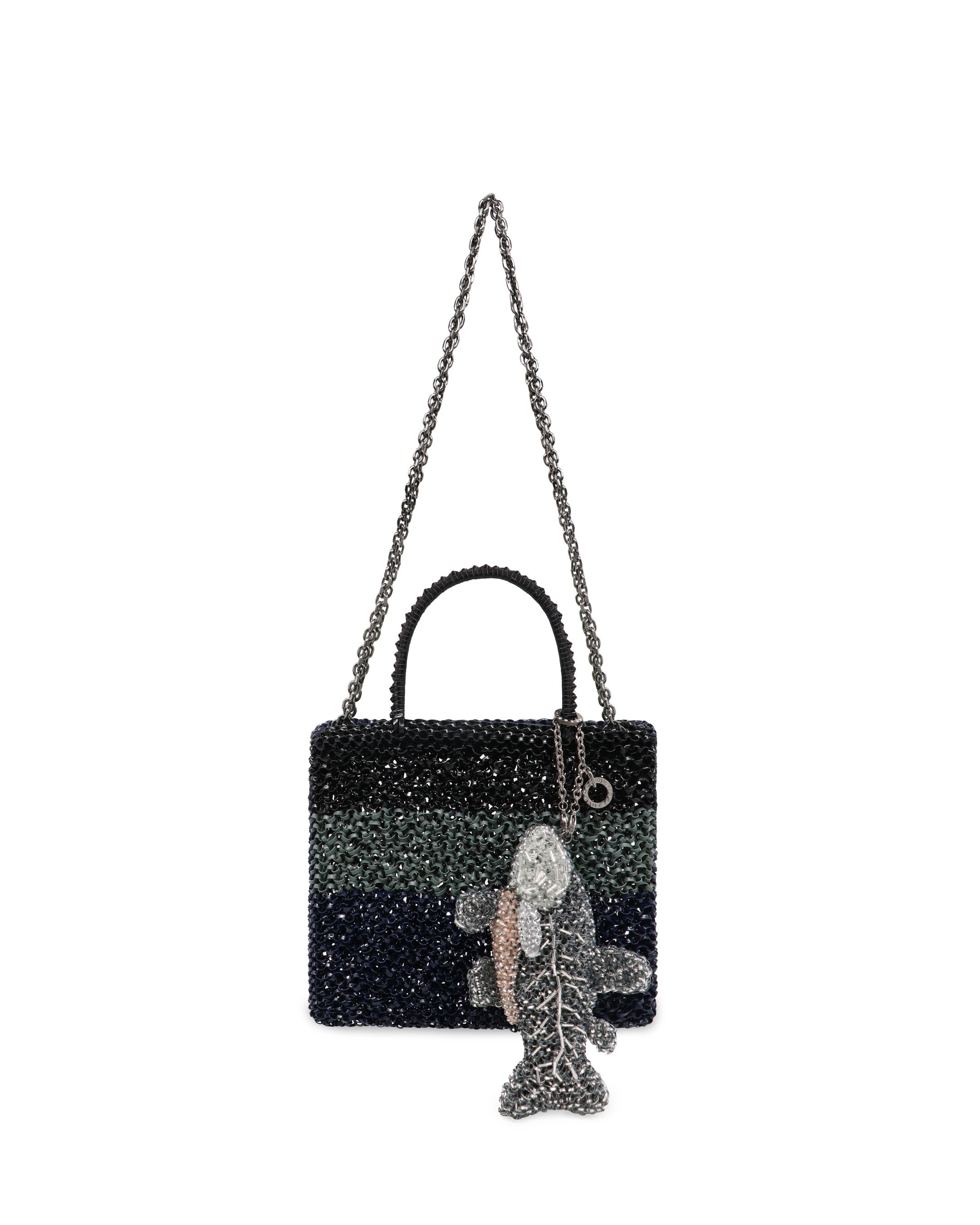 品番:PB25FMT4K7 価格:\132,000 (税込) サイズ:W: 20.5 H: 19 cm カラー:NERO OPACO/FUMO OPACO/BLUNOTTE OPACO(エナメルブラック×マットスモークグレー×エナメルナイトブルー)