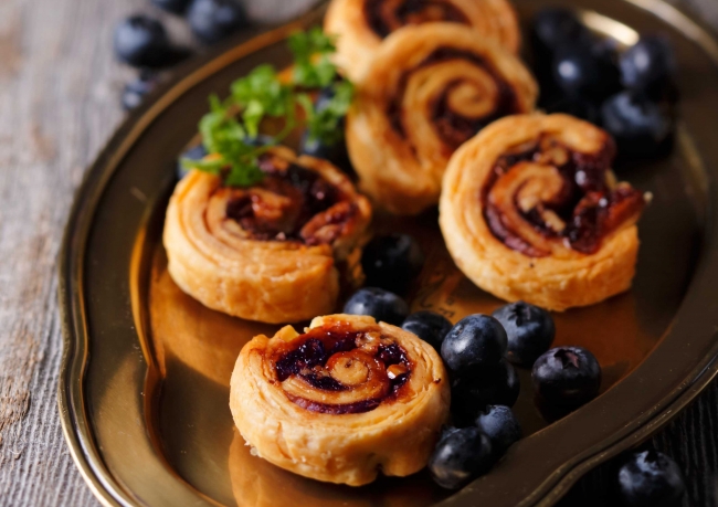 ブルーベリーは、生地にブルーベリージャム・ドライクランベリー・ピーカンナッツを巻き込