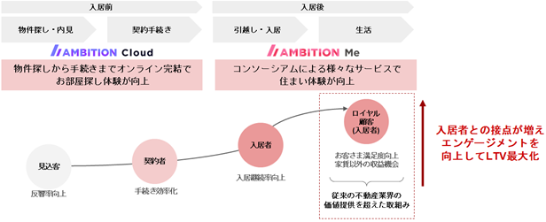 また、ロイヤリティプログラムとして、様々な企業との共同体により提携されたサービスの利用や家賃等でポイント/ステータス獲得を行えることや、決済プログラムでサービスの円滑な支払いやポイントでの支払いを可能とし、入居者様の満足度とエンゲージメントの向上、LTV(顧客生涯価値)の最大化を実現いたします。