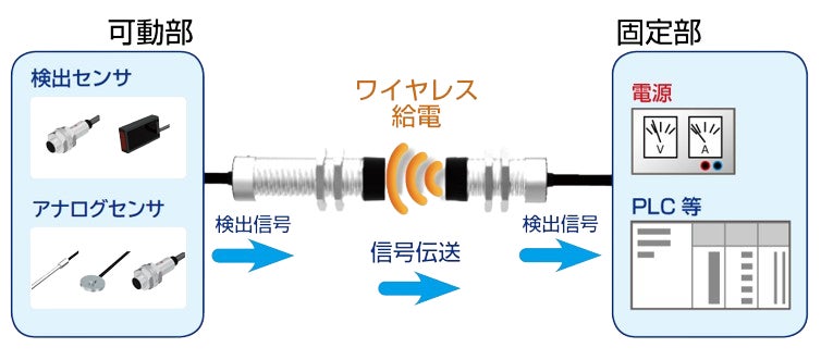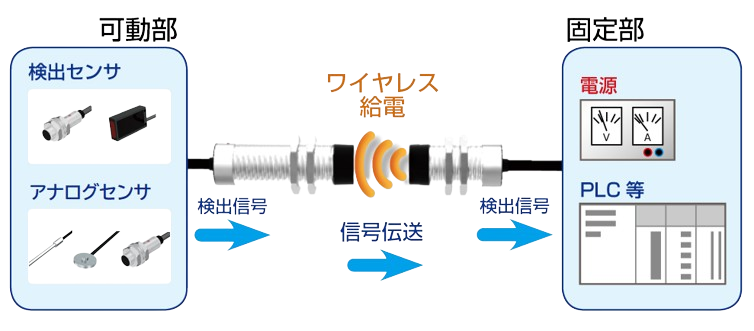 近接センサ・光電センサなどの検出センサ、熱電対・ロードセルなどのアナログ信号を非接触伝送できます。