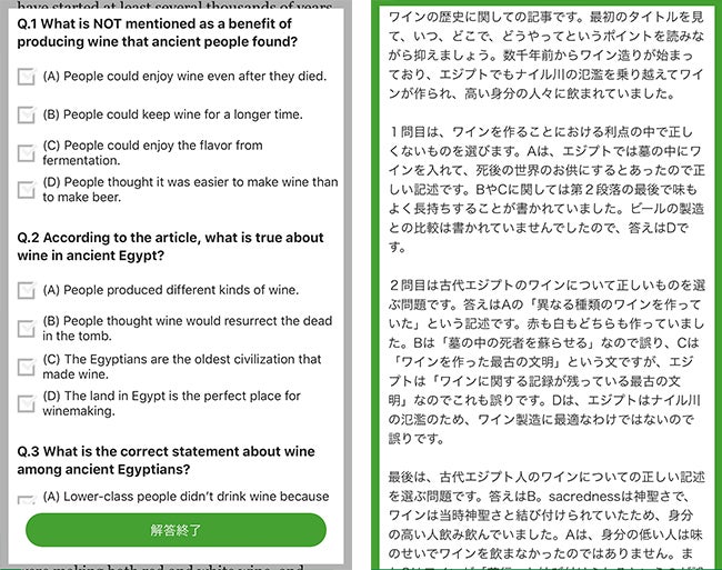 本番と同様に長文読解の問題が出題されます。 1問ごとにワンポイント解説が付いており、2問~4問で1Unitです。