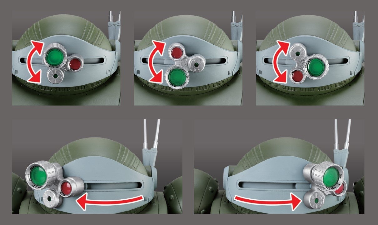 1/8スケール、全高51cmの大迫力モデルは、他では表現できないディテールや内部構造も実現しています。自動アクション、可動、光や音などの多彩なギミックで臨場感あふれるシチュエーションが楽しめます。