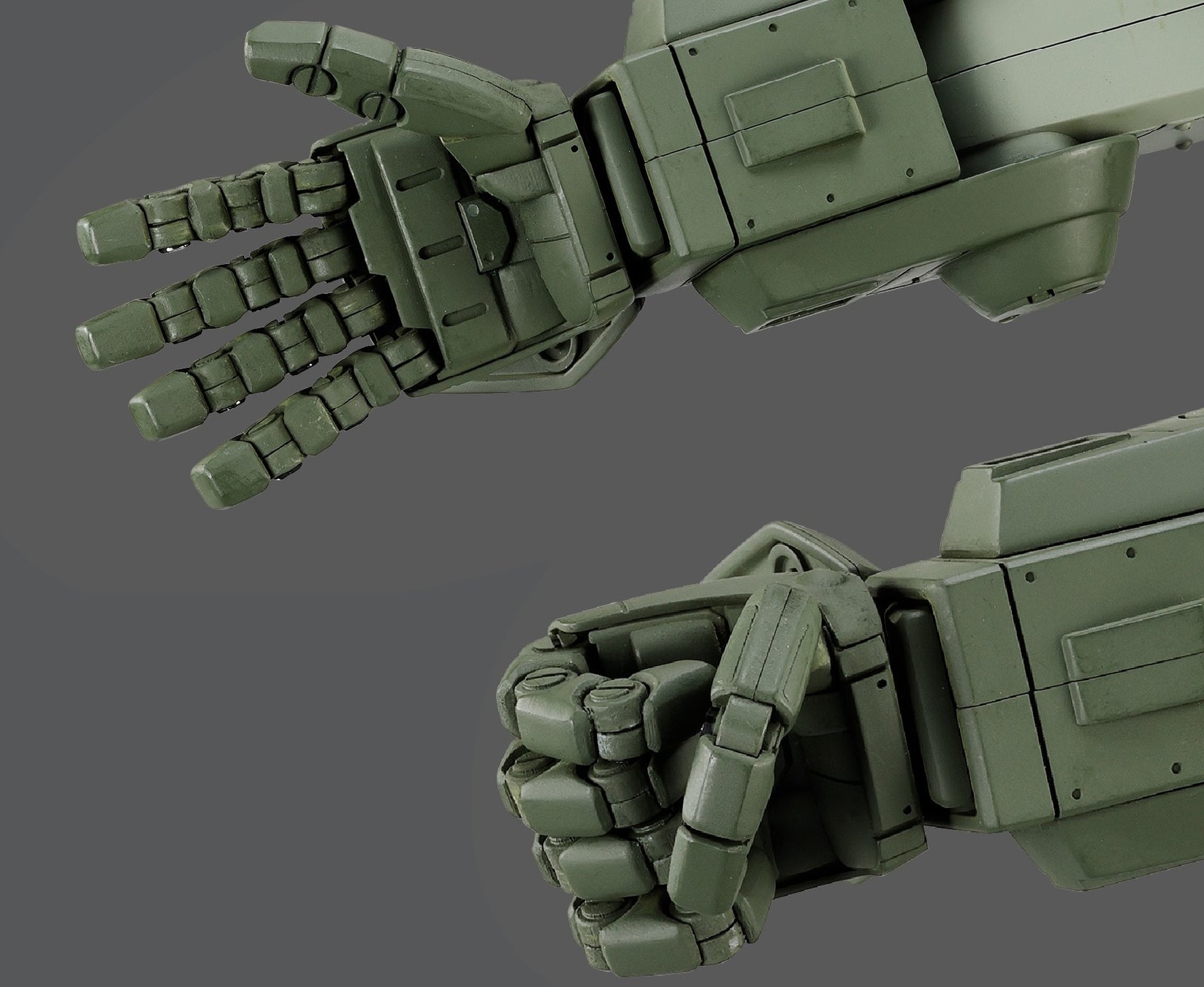 指関節はすべて可動。握りこぶし、自然なかたちの平手などを用意。工具を用いることで保持力の調整ができます。