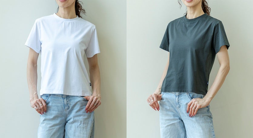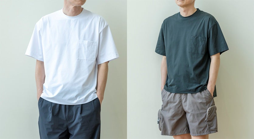 当社は、外出前の支度中や混雑した車内など、日常のあらゆる場面で快適に過ごせるウェアへのニーズに着目し、近年注目されているPCM(相変化材料)を繊維に付着・定着させる加工技術を研究。2017年より展開するライフスタイルブランド「FOOTMARK NATURAL」での経験も活かしながら、着用時から冷たさが持続する、新しい発想のウェア開発に取り組みました。