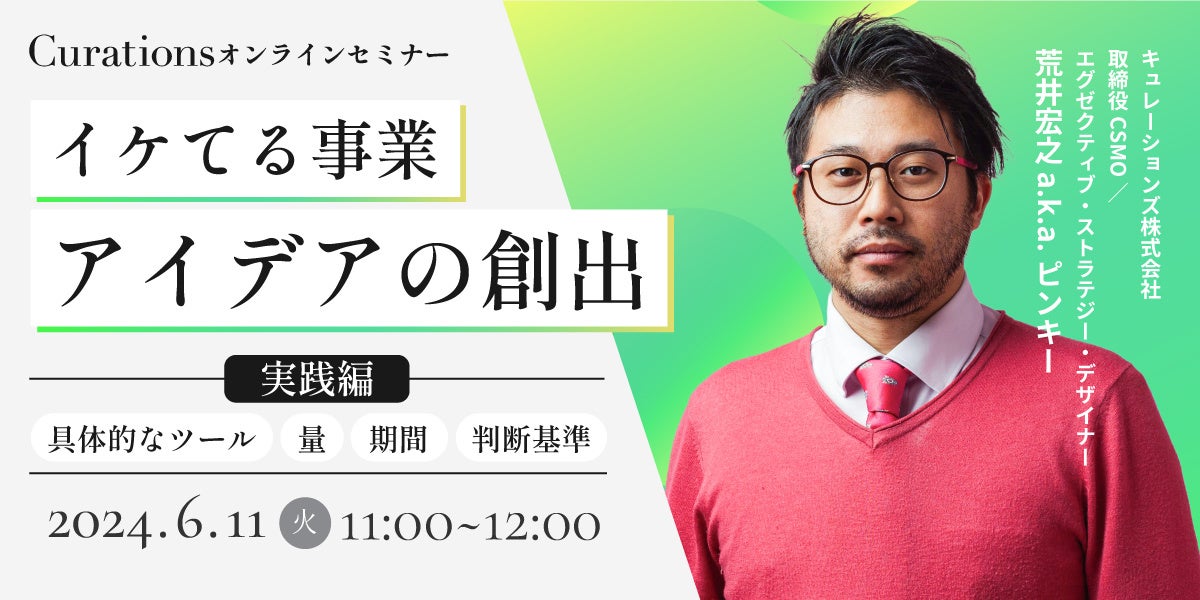 顧客企業のビジネス変革を成功に導くキュレーションズ株式会社(本社:東京都渋谷区、代表取締役社長:根本隆之、以下当社)は、『イケてる事業アイデアの創出:実践編 〜具体的なツール、量、期間、判断基準〜』を2024年6月11日(火)に開催いたします
