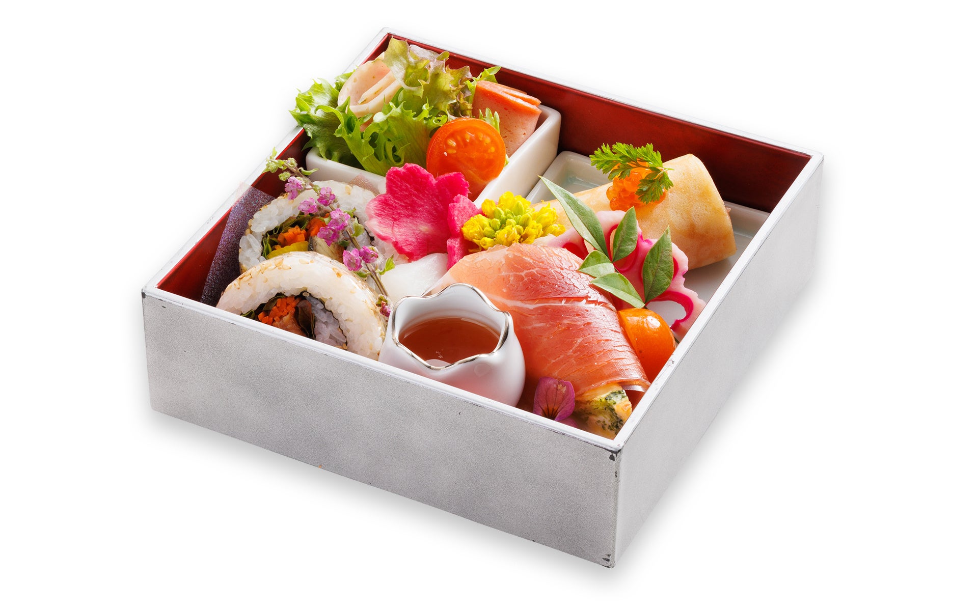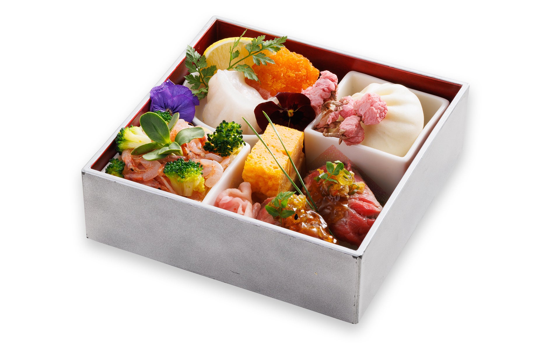 桜肉と呼ばれる馬肉のオリジナル寿司や、華やかなセイボリーでお花見気分を味わってください。