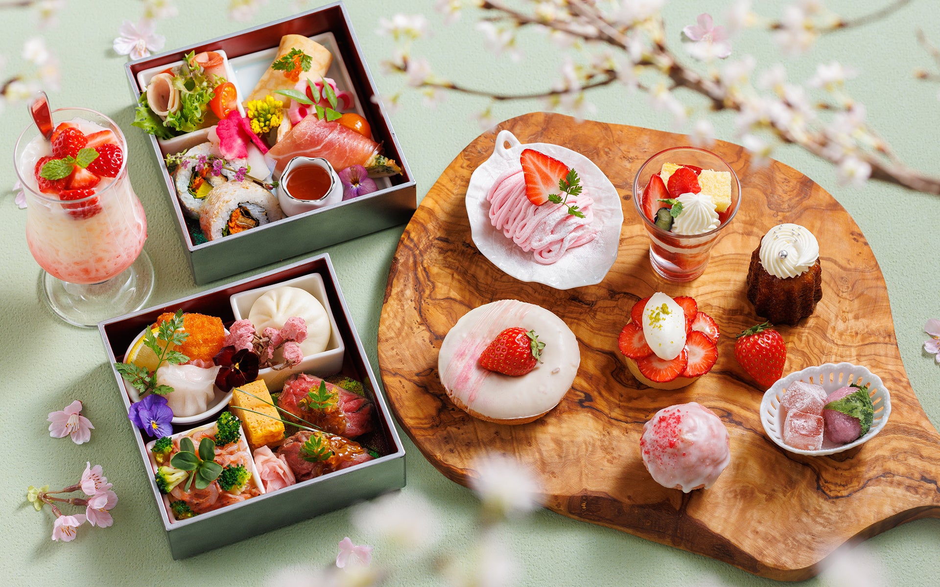 桜と苺の春色スイーツとお花見重のセイボリーを、ホテル最上階より桜咲く浅草の街並みを眺めながら、お召し上がりいただけます。