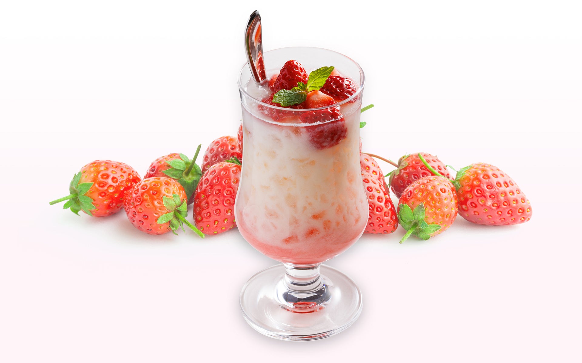 苺をふんだんに使用し、グレナデンシロップと酸味のあるホワイトシロップで、グラデーションを作りました。