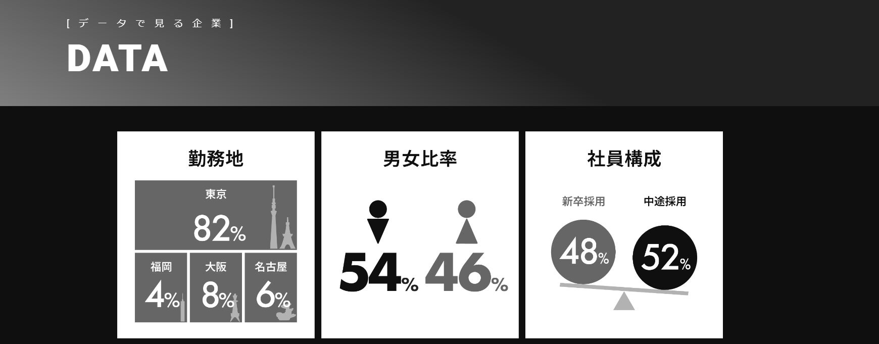 働く社員の想いや特徴、働き方をデータや動画で分かりやすく紹介しています。社風や環境がより深く理解できる内容となっています。