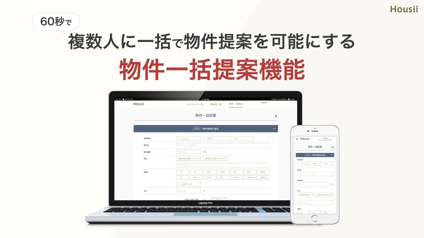 これまでもHousiiは不動産会社の販売活動における業務支援を行うことで、不動産会社が顧客と向き合う時間を増やすことに努めて参りました。今回の新機能の提供により、更に強力に不動産会社の業務効率化を推進してまいります。